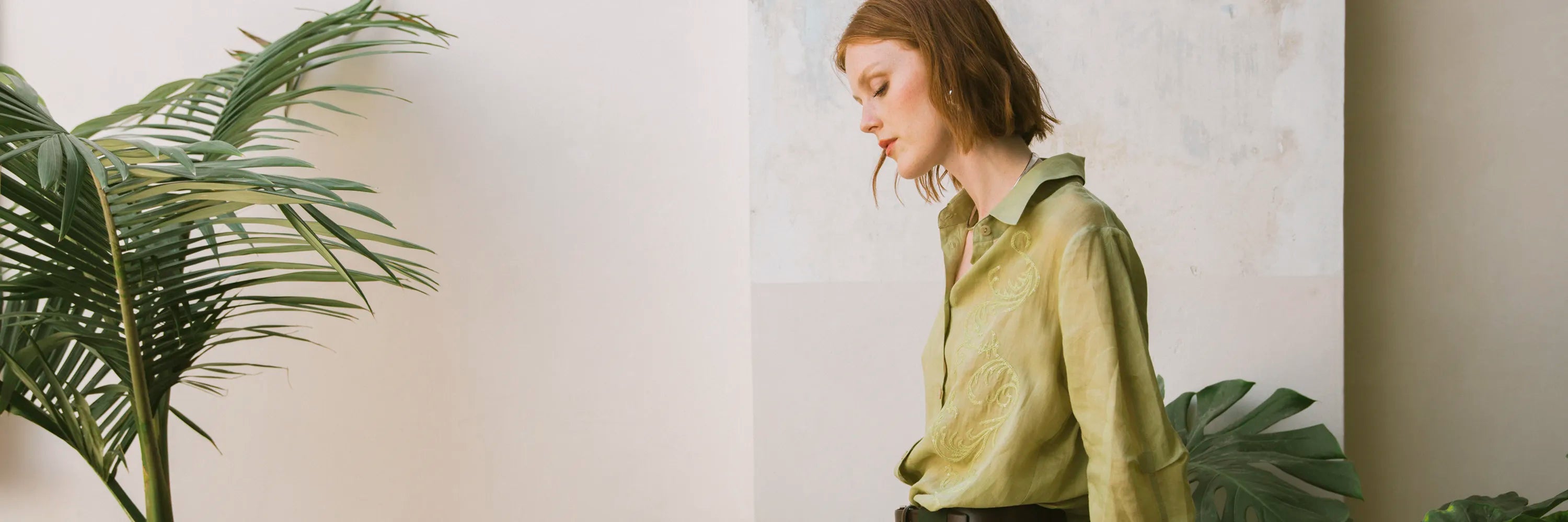 Hemd aus reinem Ramie mit Stickerei und Puffärmeln
